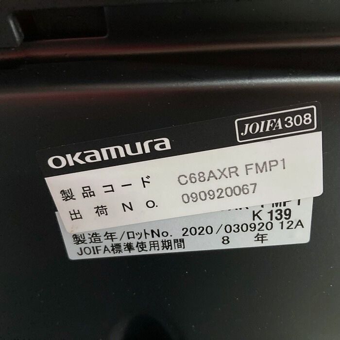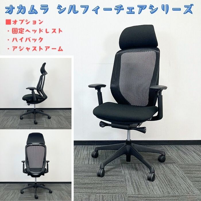 オカムラ シルフィーチェアシリーズ オフィスシーティング[アジャストアーム付き ] C68AXR FMP1 エクストラハイバック 背/座:ブラック 2020年製 中古