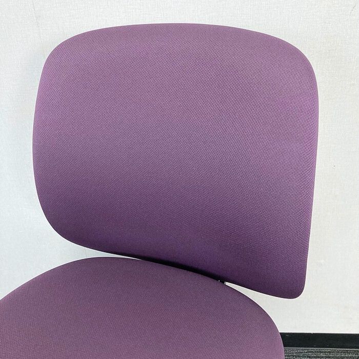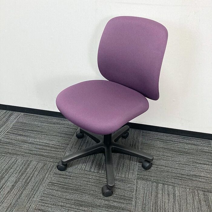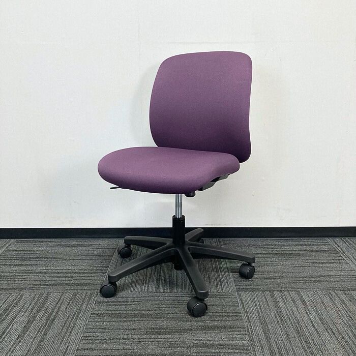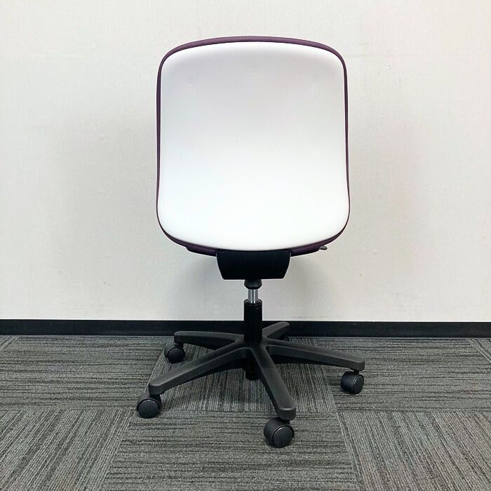 - 丸みを帯びた柔らかい印象のデザインと上品なプラムパープル色のカラーリングに、座り心地の良い厚めの背座のクッションが特徴的なオフィスチェアです。