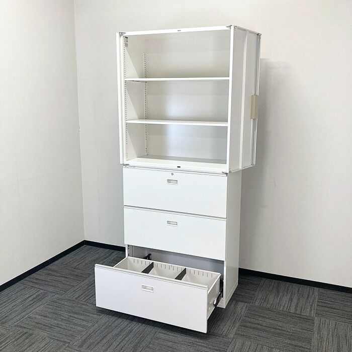 イトーキ シンラインキャビネットシリーズ 両開き書庫+3段ラテラル W900×D450×H2136 ホワイト 2015年製 中古