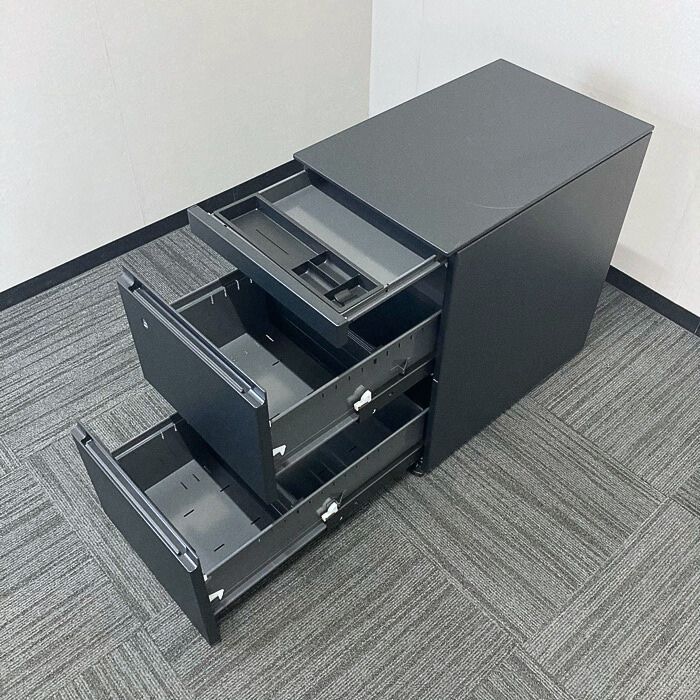 コクヨ GXワゴンシリーズ 3段ワゴン SDM-GXZ46T3E6A W395×D602×H648 ブラック(マットタイプ) 2019年製 中古