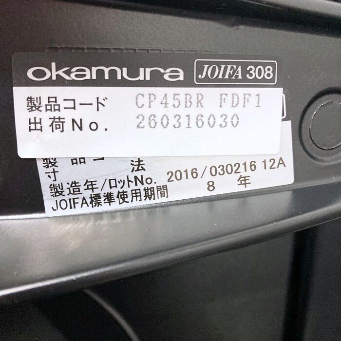 オカムラ バロンチェアシリーズ オフィスシーティング[デザイインアーム] CP45BR FDF1 ハイバック 2016年製 中古