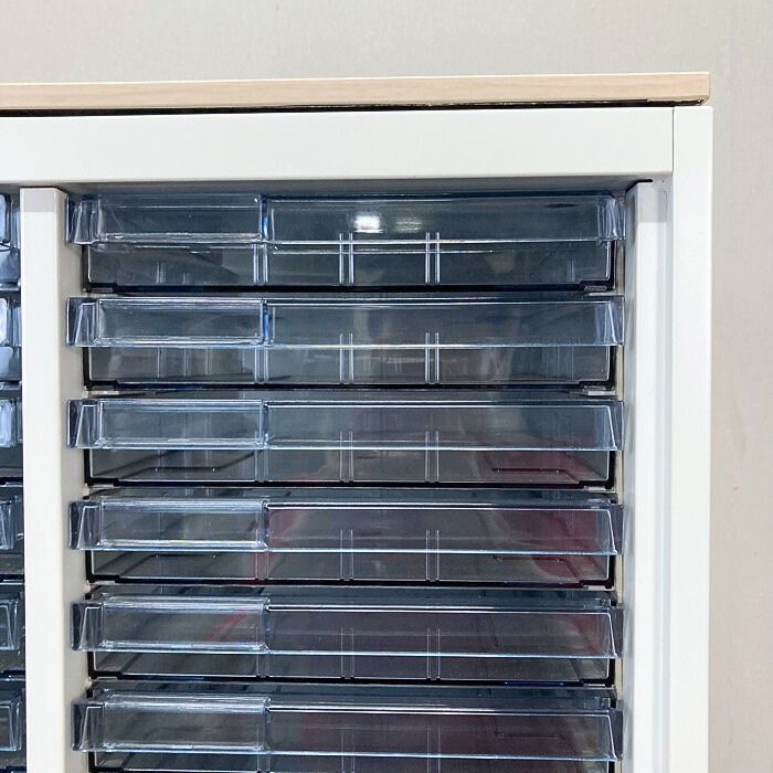 オカムラ レクトラインシリーズ クリスタルトレイ[浅型33段/深型15段] 4B03AC ZA75 W900×D450×H1115 天板:プライズウッドライト/本体:ネオホワイト 2019年製 中古