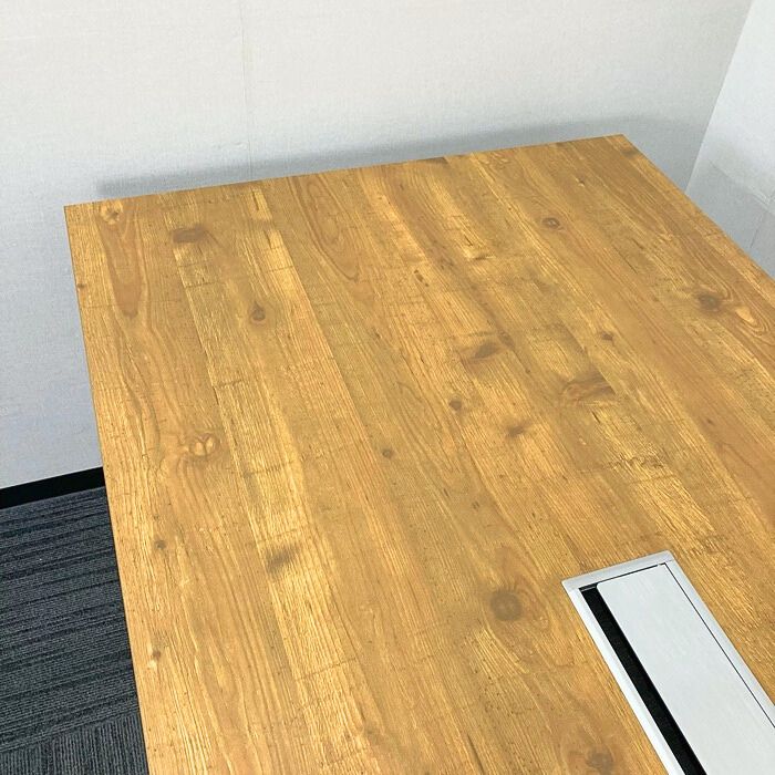 程よい重厚感と味わいのある古木調の天板が落ち着きのあるミーティングスペースを提供します。