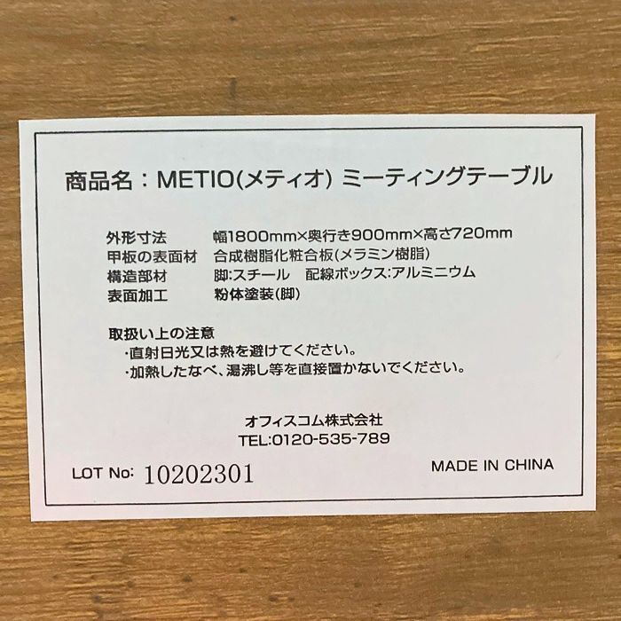 オフィスコム メティオ2.0シリーズ ミーティングテーブル W1800×D900×H720 天板:古木調/脚:ブラック 2023年製 中古
