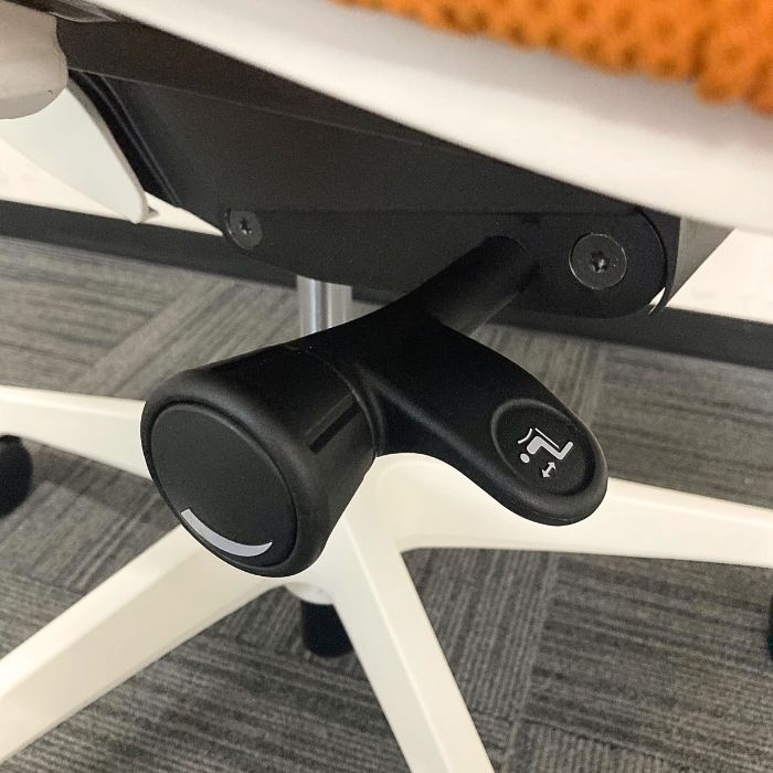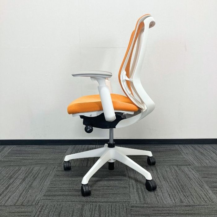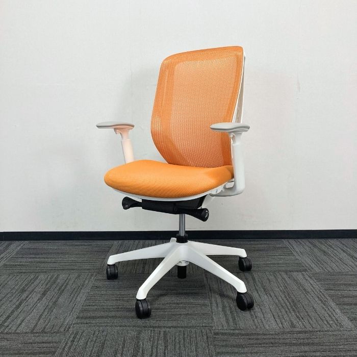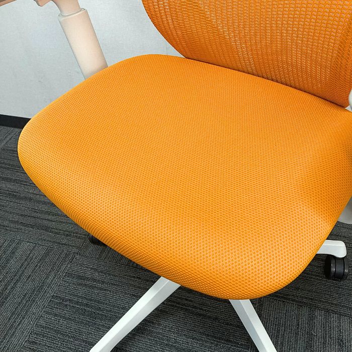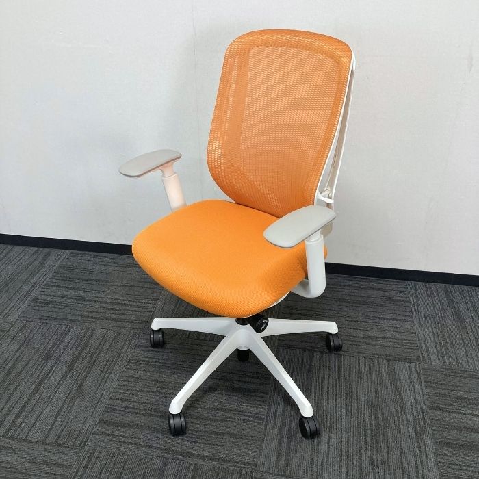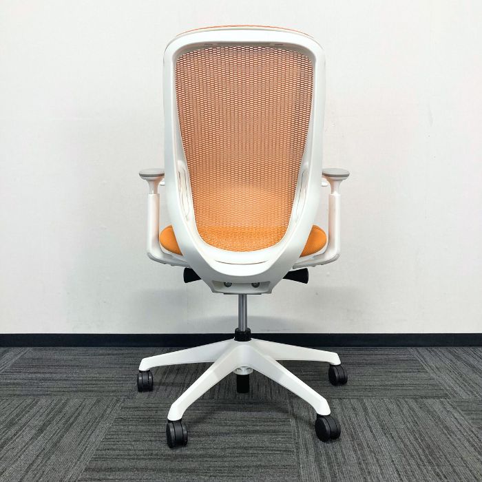 オカムラ シルフィーチェアシリーズ オフィスシーティング[アジャストアーム] C685XR FMPR8 ハイバック 背座:オレンジ/フレーム:ホワイト  2025年製 中古