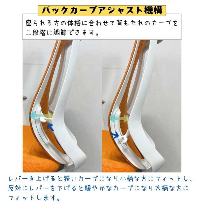 バックカーブアジャスト機構や前傾姿勢付きの背座シンクロリクライニングなどその他にも多彩な機能を搭載。