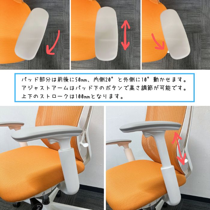 オカムラ シルフィーチェアシリーズ オフィスシーティング[アジャストアーム] C685XR FMPR8 ハイバック 背座:オレンジ/フレーム:ホワイト 2025年製 中古