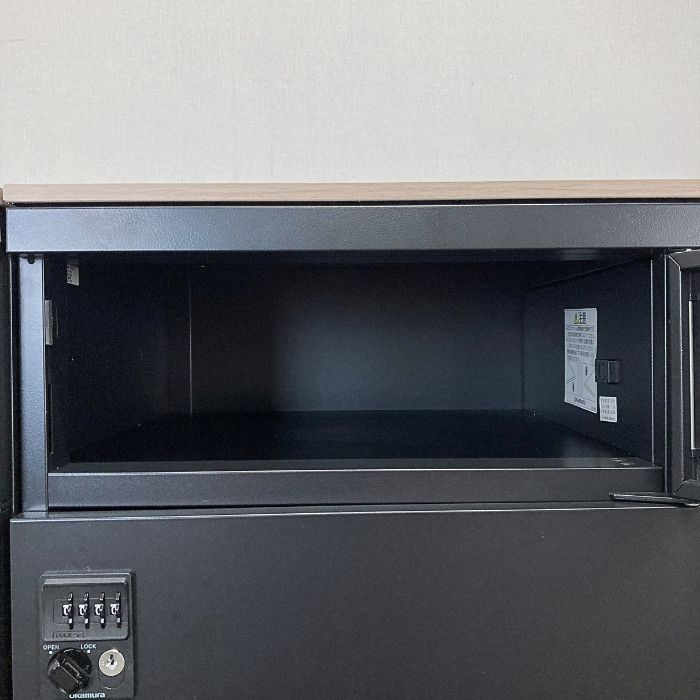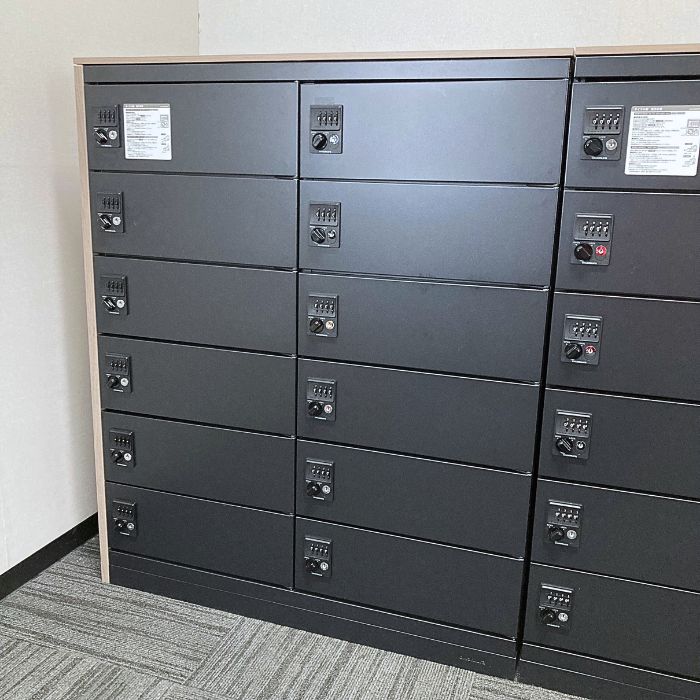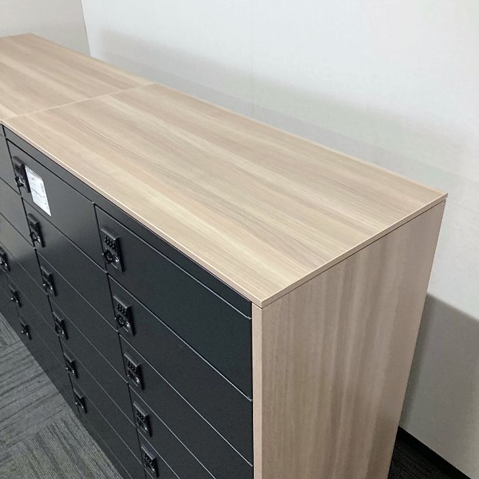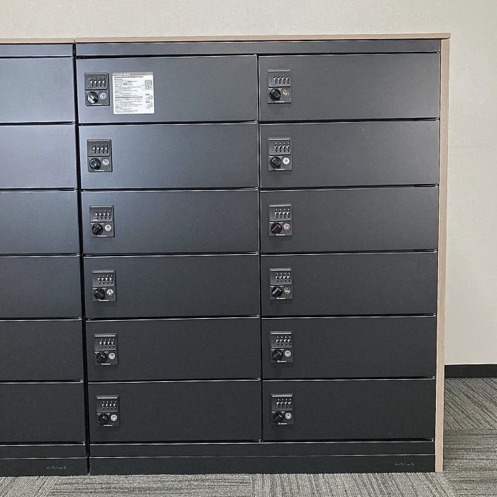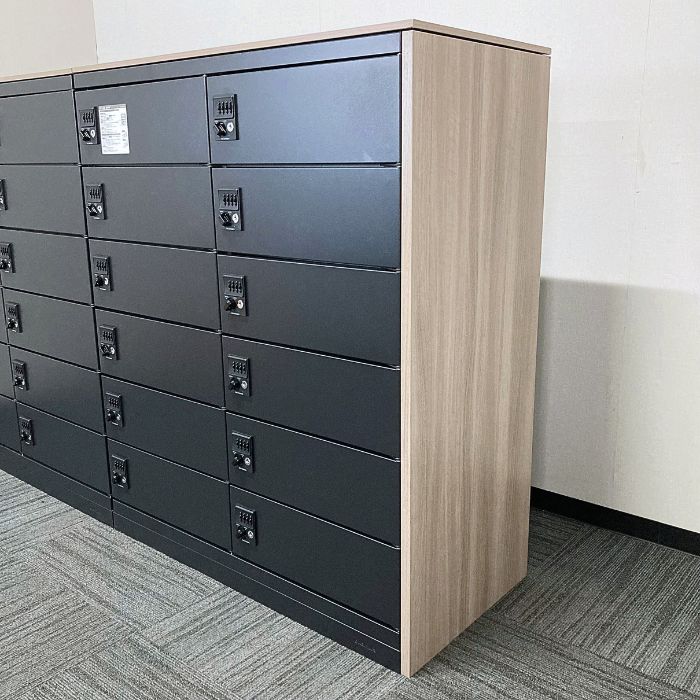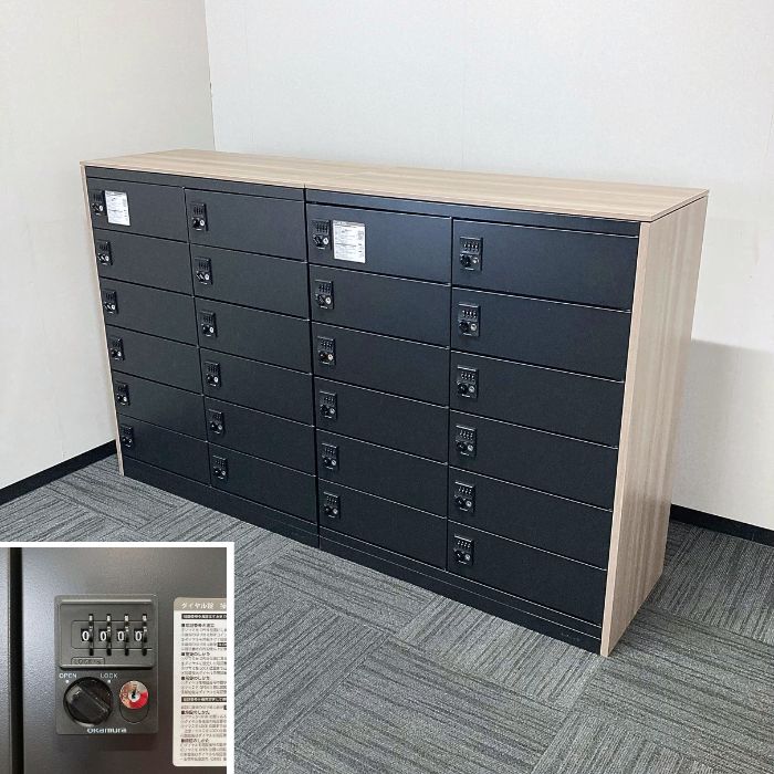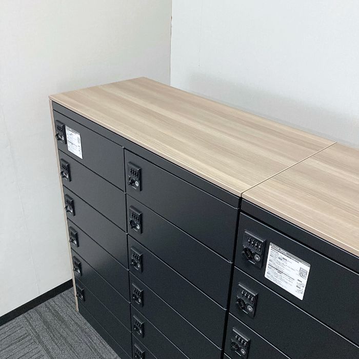 オカムラ モバイル機器保管庫シリーズ モバイルロッカー2台セット[2列6段12庫] 4ZY1EW ZK25 W1840×D450×H1115 天板:プライズウッドミディアム/本体:ブラック 2022年製 中古 ※SALE品