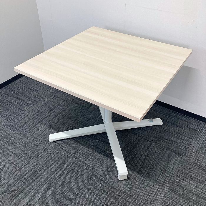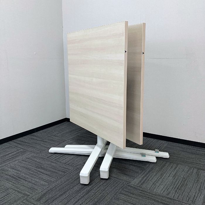 オカムラ ライブスシリーズ 天板フラップテーブル[キャスター付き] 87AE1J MX61 W900×D900×H720 天板:プライズウッドライト/脚:ネオホワイト 2023年製 中古