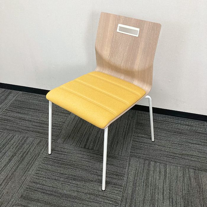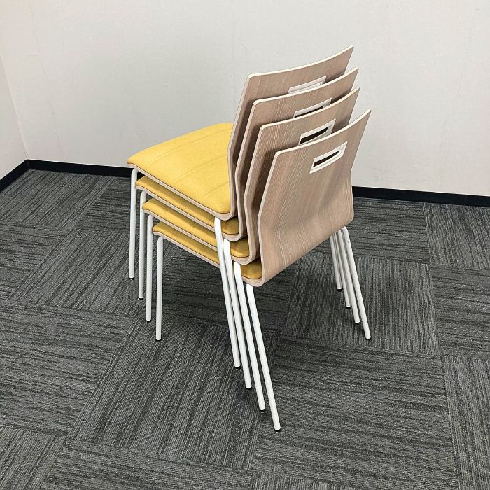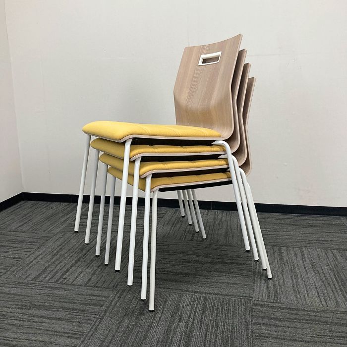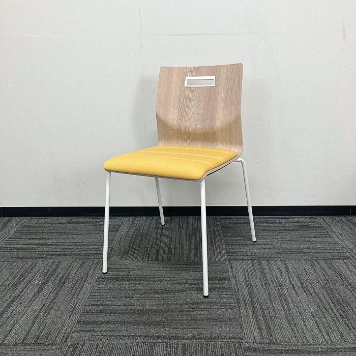 オカムラ スイープシリーズ ミーティングチェア[4脚セット販売] L409EW FXW7 背:ビンテージエルム/座:イエロー 2019年製 中古