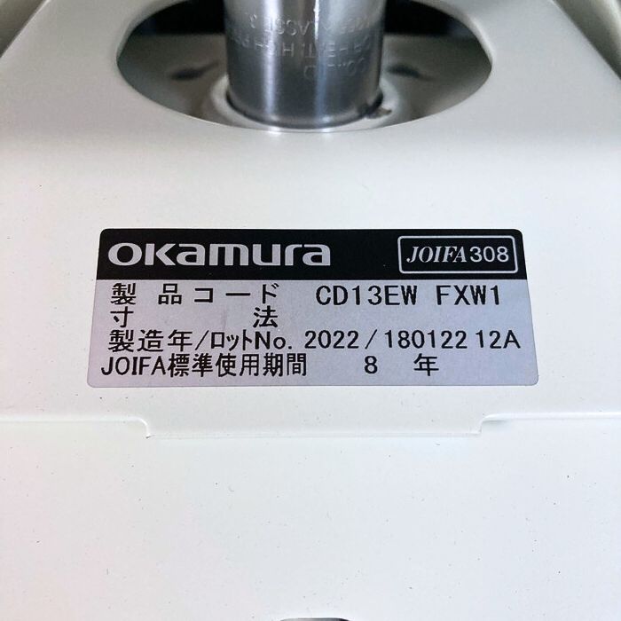 オカムラ ライブスエントリーチェアシリーズ オフィスチェア CD13EW FXW1 背座:グレー/本体:ホワイト/脚:グレー 2022年製 中古