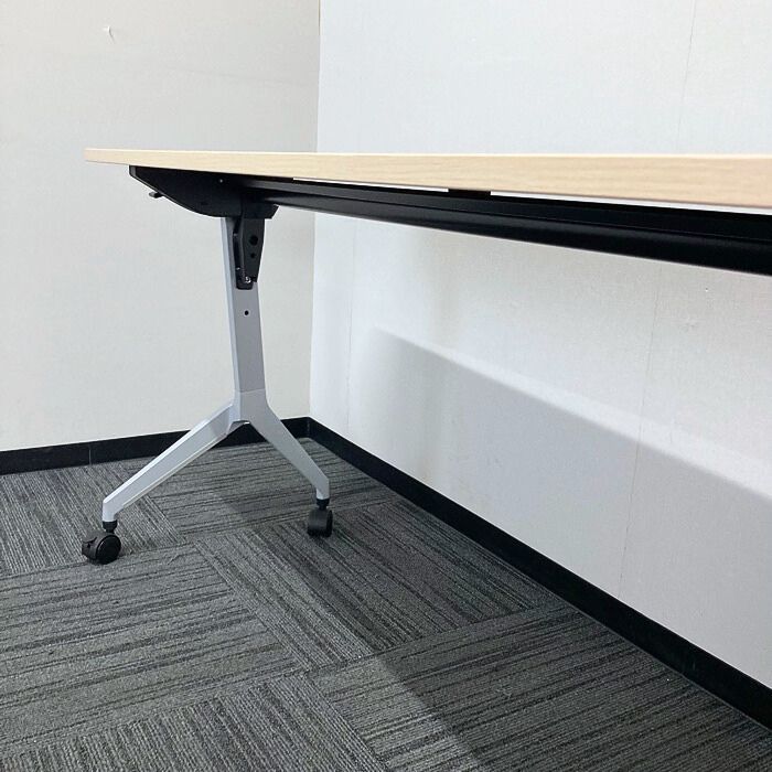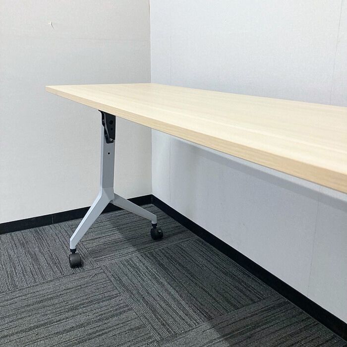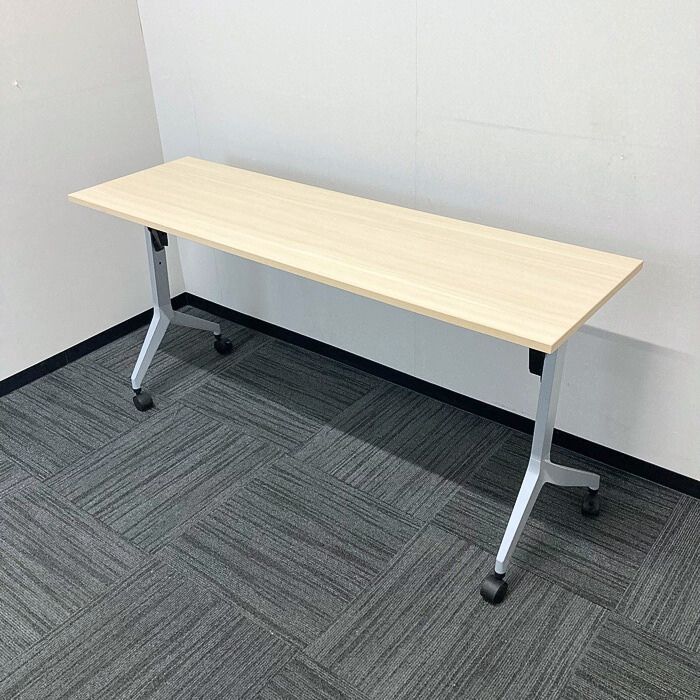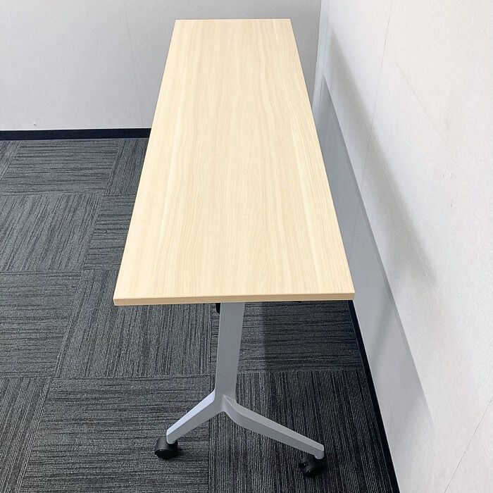 内田洋行 パラグラフシリーズ 平行スタックテーブル[幕板、棚板無し] W1500×D450×H720 天板:ライトファインウッド/脚:シルバーメタリック 2021年製 中古
