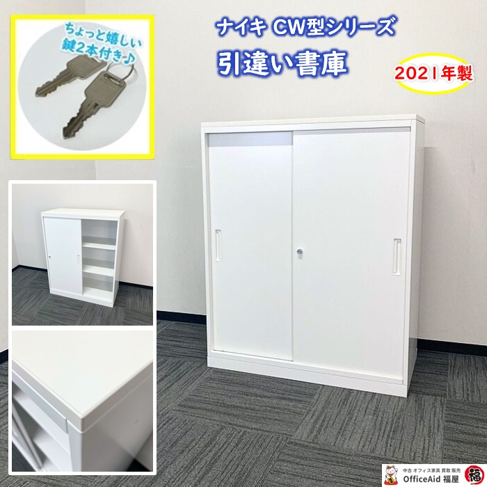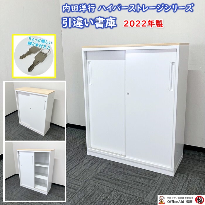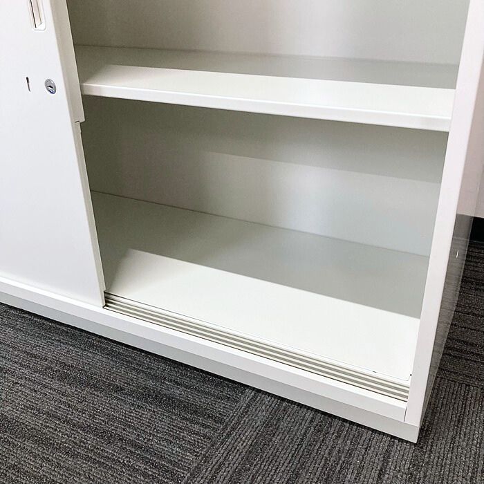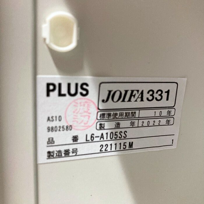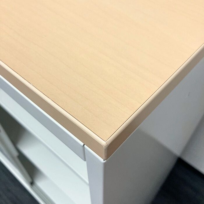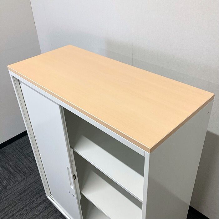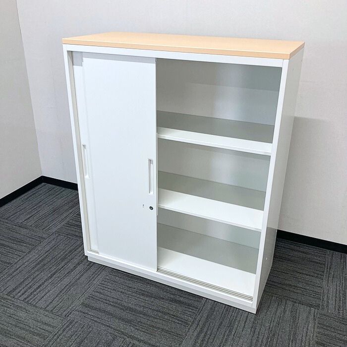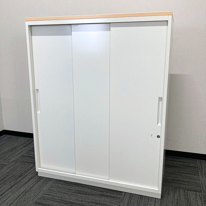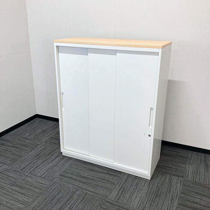 プラス L6シリーズ 3枚引き違い保管庫 L6-A105SS W900×D400×H1120 天板:ホワイトメープル/本体:ホワイト 2022年製 中古