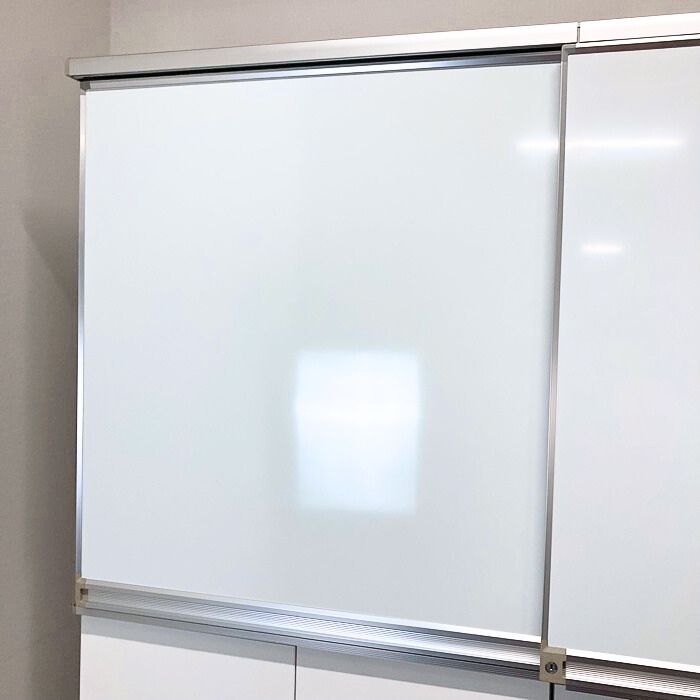 ボードをスライドすることでオープンの収納スペースが現れるので、ホワイトボードを置くスペースと収納スペースの両立が可能です。