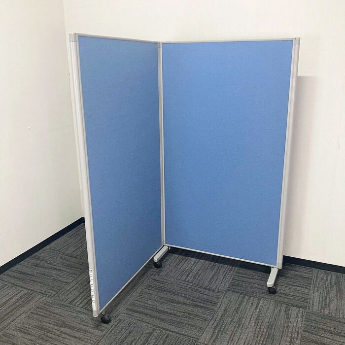 2連パーティション W1800×D420×H1550 クロス生地:ブルー/フレーム:グレー 中古 ➉