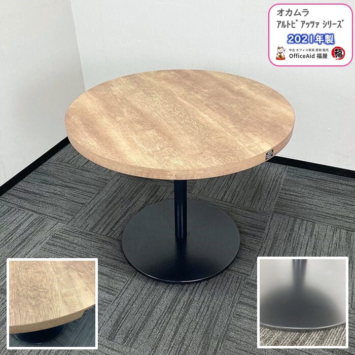 イトーキ ノットワークシリーズ 円型カフェテーブル TLLP-06CJT-22 Φ600×H720 天板:トリニティオーク/支柱・脚:ブラック 2020年製 中古 ➉