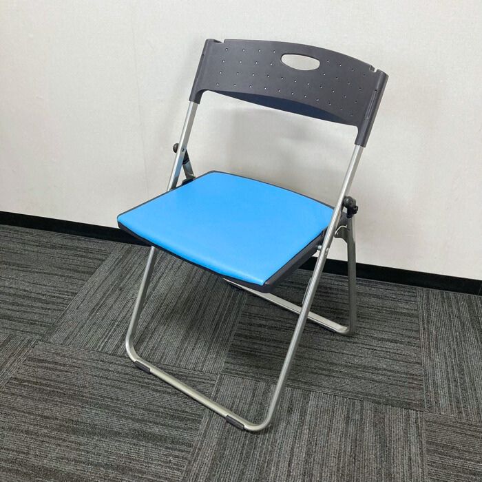アイリスチトセ 折り畳みチェア CAL-XS02M-V BL 背:ブラック/座:ブルー/脚:シルバー 中古 ⑳