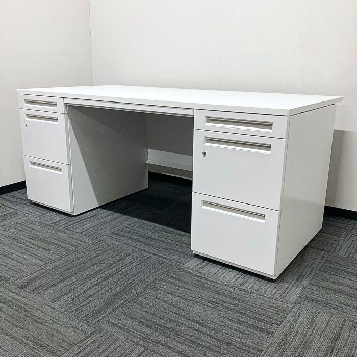 内田洋行 スカエナデスクシステム[Stype]シリーズ 両袖デスク SFP1600PD W1600×D800×H700 天板:ピュアホワイト/本体:オフホワイト 2021~2022年製 中古
