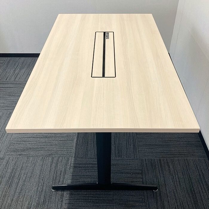 オカムラ ブレスタシリーズ ミーティングテーブル MC635H MX61 W1350×D800×H720 天板:プライズウッドライト/脚:ブラック 2023年製 中古