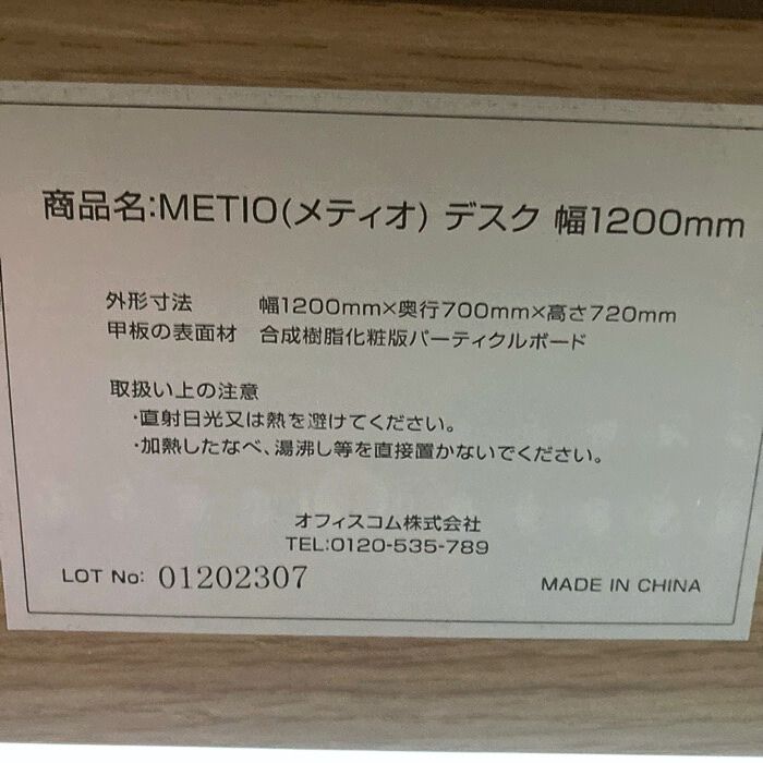 オフィスコム メティシリーズ 平デスク W1200×D700×H720 天板:ナチュラル/脚:ブラック 2023年製 中古