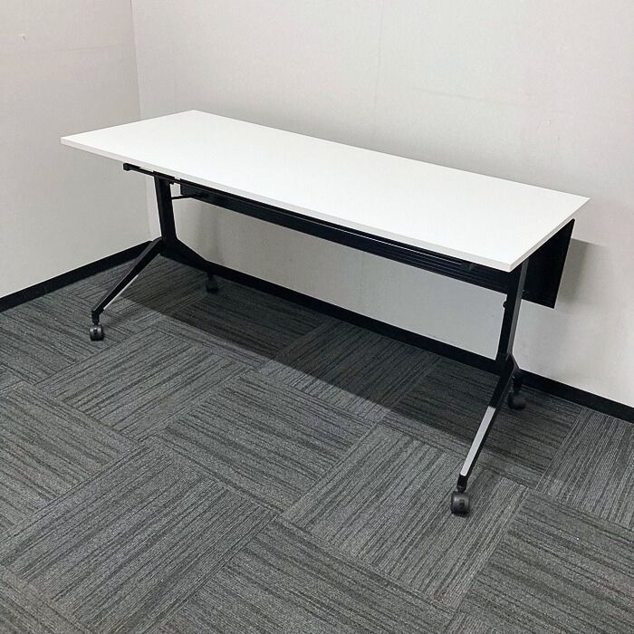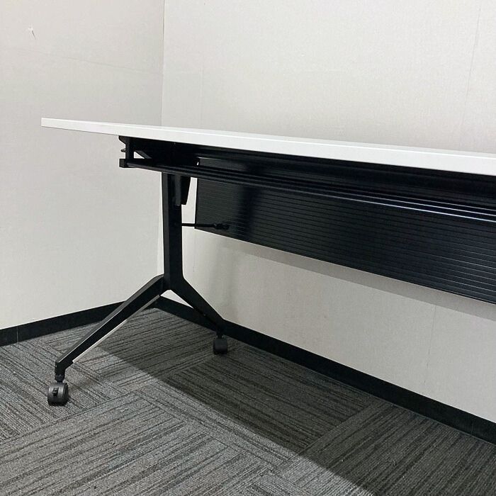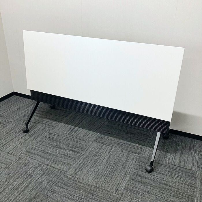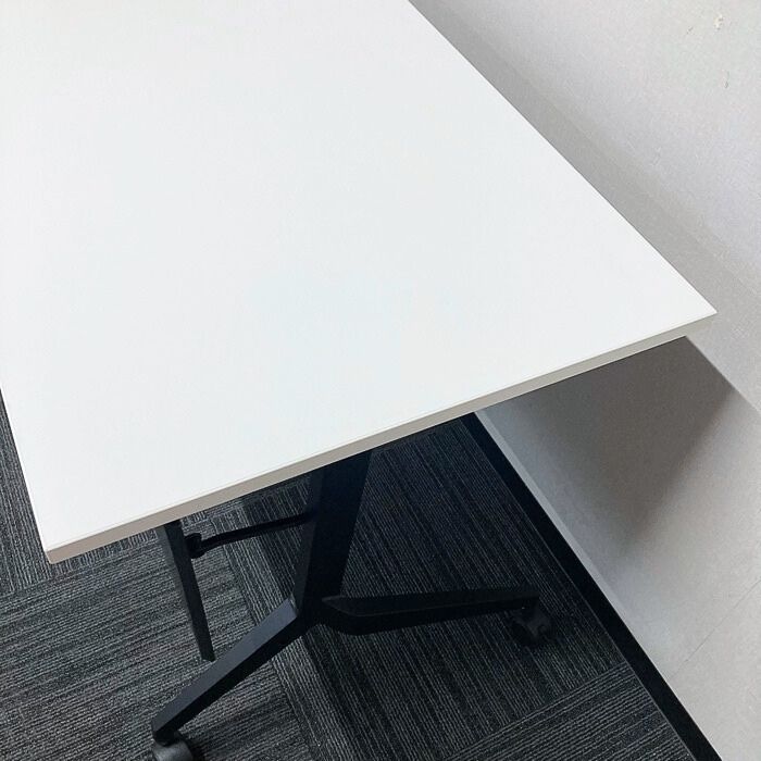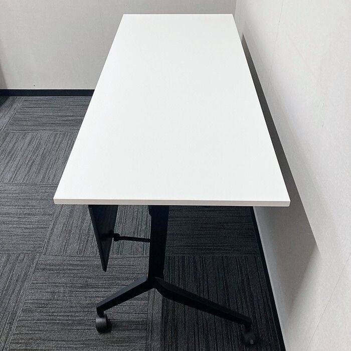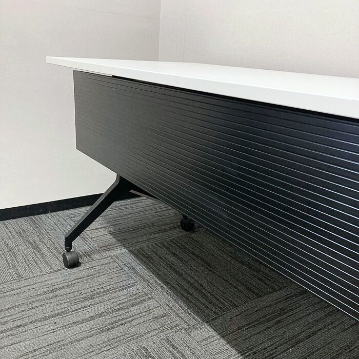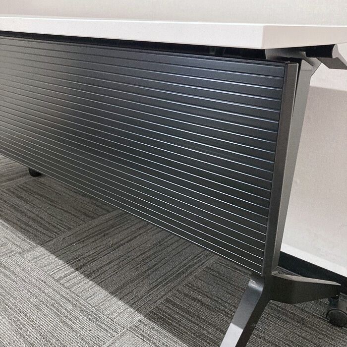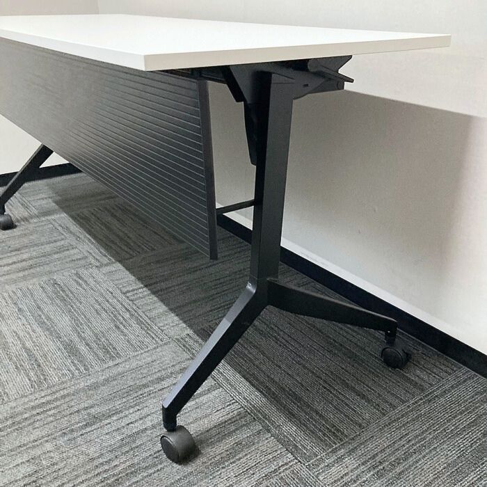 内田洋行 パラグラフシリーズ 平行スタックテーブル[幕板付き] W1500×D600×H720 天板:ピュアホワイト/脚:ブラック 2022年製 中古 ➉