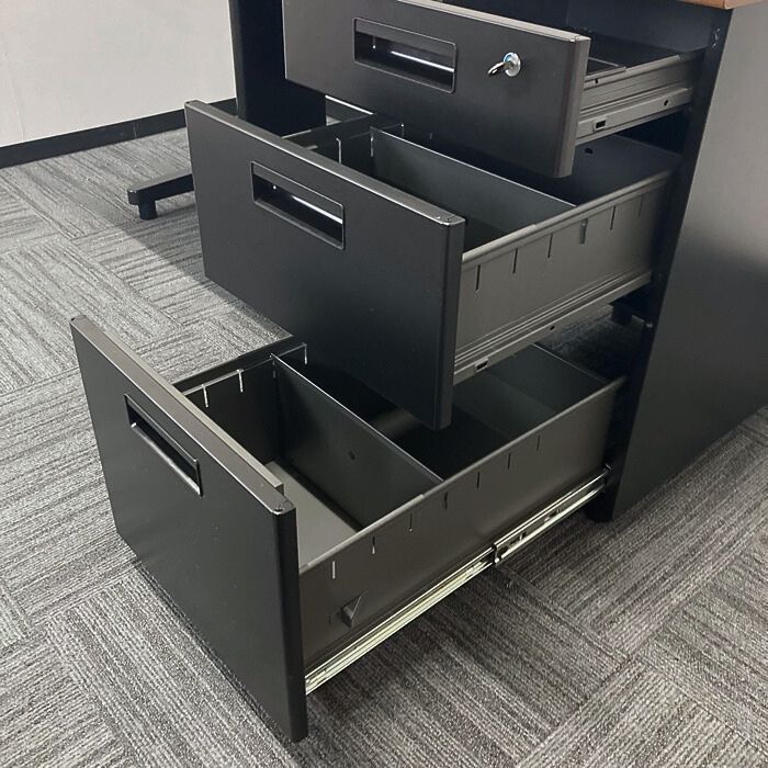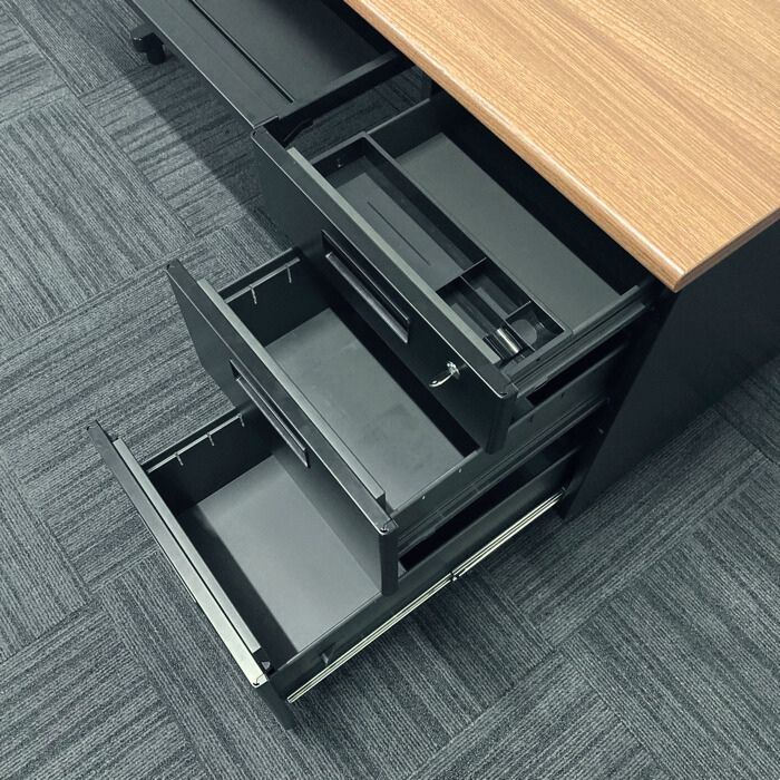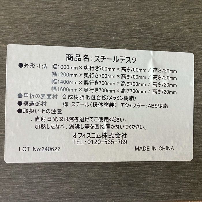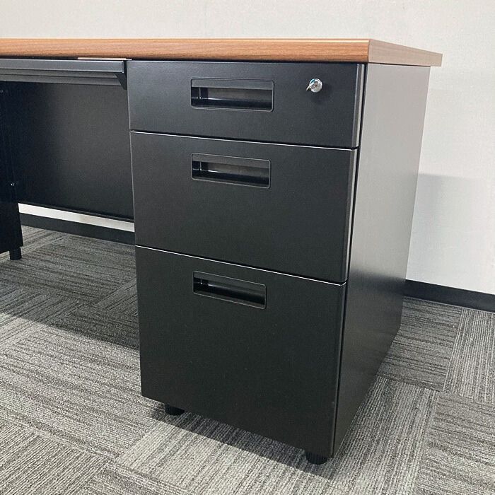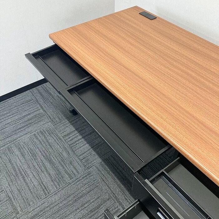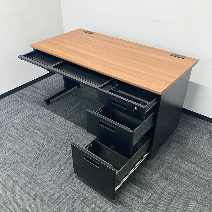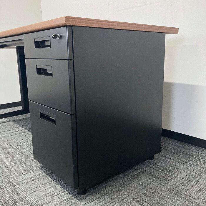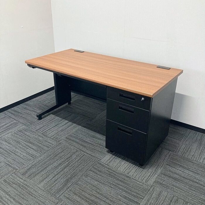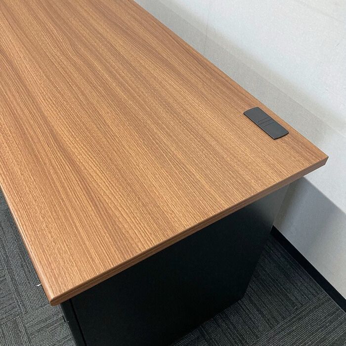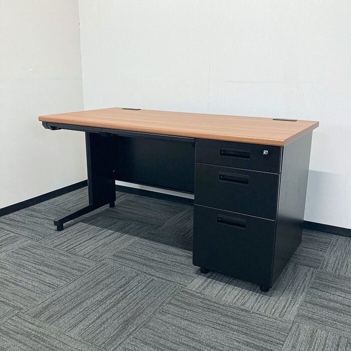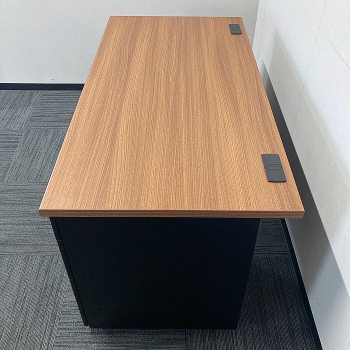 オフィスコム 片袖デスク W1400×D700×H720 天板:ウォルナット/本体:ブラック 2024年製 中古