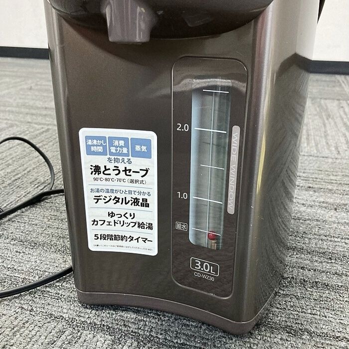 象印 CD-WZシリーズ マイコン沸とう電動ポット CD-WZ30 W210×D285×H290 容量:3L メタリックブラウン 2024年製 中古