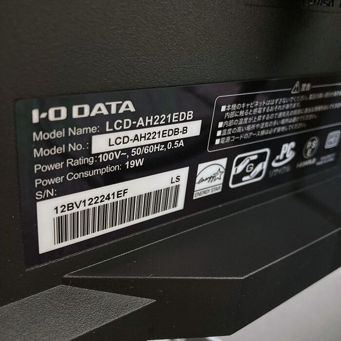 I・O DATA LCD-AH221EDシリーズ 21.5型ワイド液晶ディスプレイ LCD-AH221EDB ブラック 2019年製 中古 ※電源コード付き