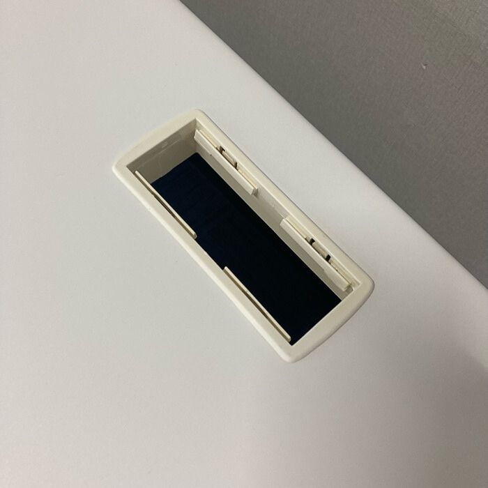 配線孔が天板奥側に二か所、収納はセンター引き出しと右袖になります。