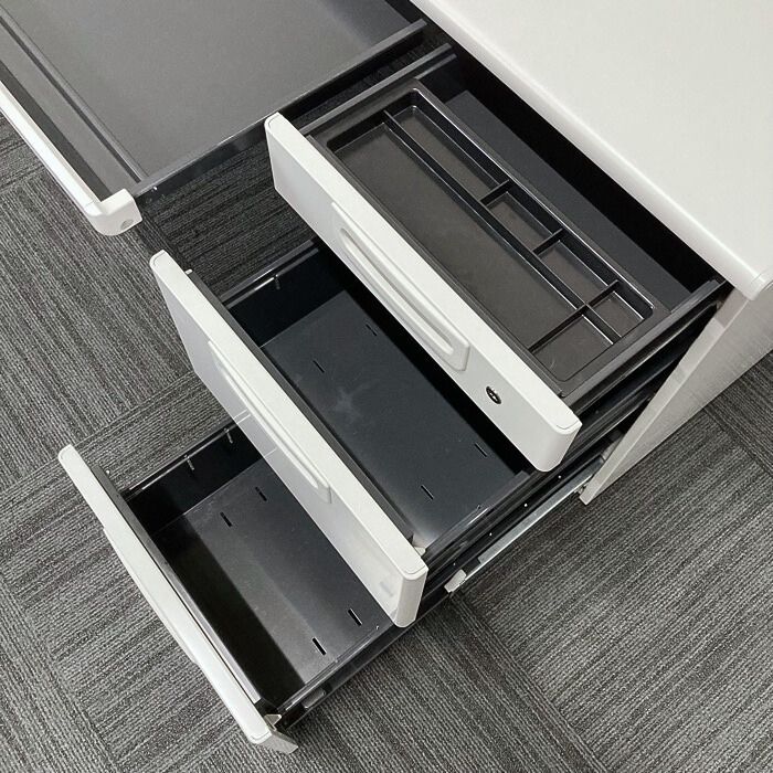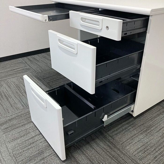 コンパクトサイズですが、センター引き出しと右袖がついてたっぷり収納可能です。