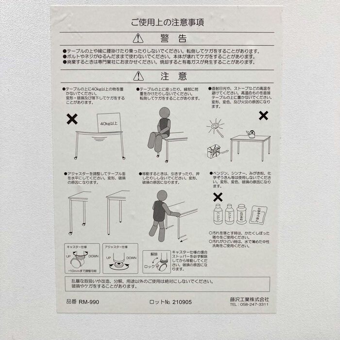 ・アジャスター脚: Φ31.8スチールパイプ、粉体塗装(ホワイト)、アジャスター付