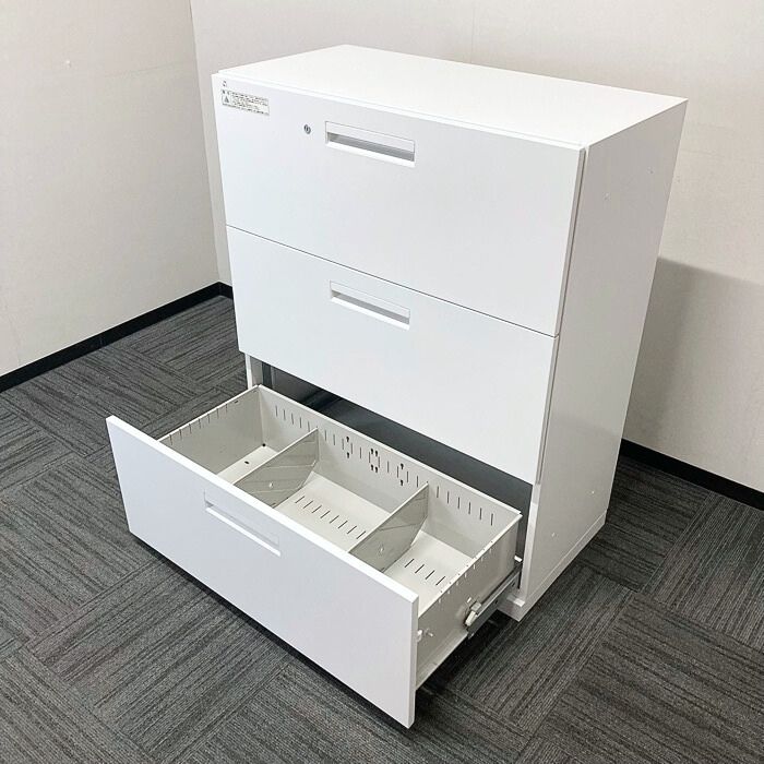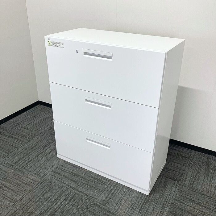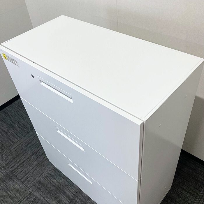 内田洋行 HSシリーズ 3段ラテラルキャビネット W900×D450×H1100 オフホワイト 2021年製 中古