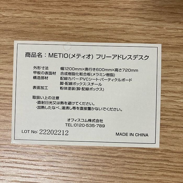 オフィスコム メティオシリーズ フリーアドレスデスク W2400×D1200×H720 天板:ナチュラル/脚:ブラック 2022年製 中古 ➉