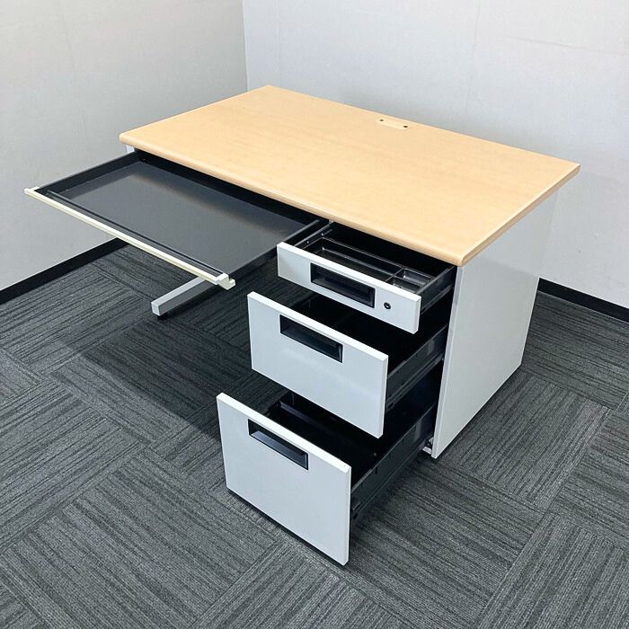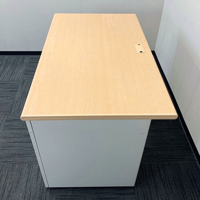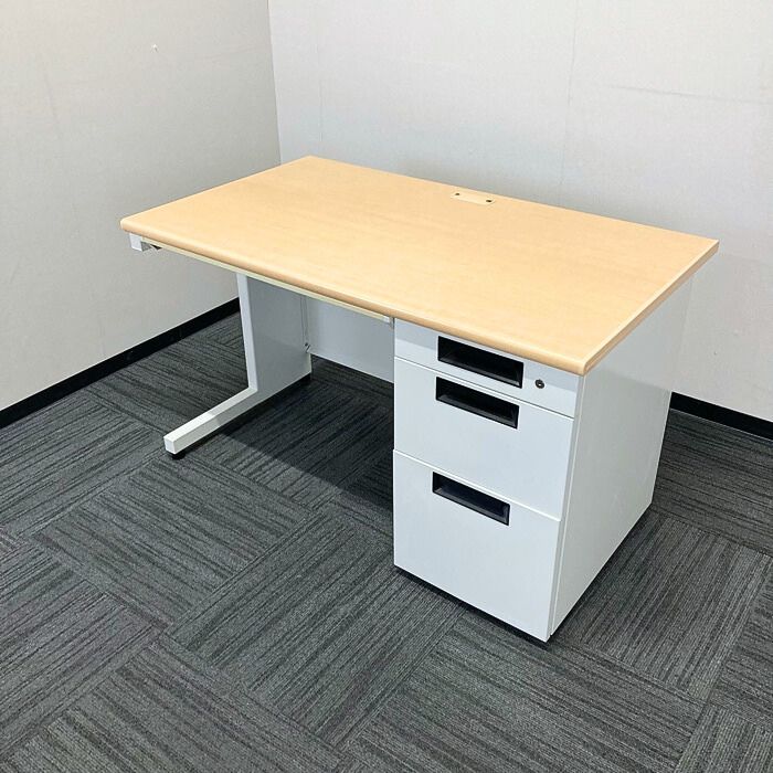 プラス フラットラインシリーズ 片袖デスク SP-T127 WM W1200×D700×H700 天板:ナチュラル/本体:ホワイト 2013~2014年製 中古 ➉