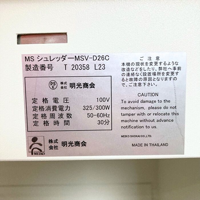明光商会 MSシュレッダシリーズ オフィスシュレッダ MSV-D26C W600×D300×H660 ホワイト 2022年製 中古