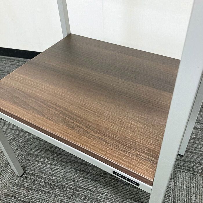 オカムラ 4L93シリーズ 電話台 4L93AA MX53 W450×D350×H700 天板:プライズウッドダーク/フレーム:シルバーメタリック 2022年製 中古