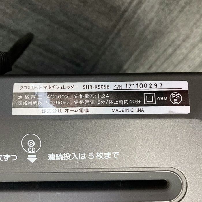 OHM 静音マルチシュレッダー SHR-X505B ブラック 中古