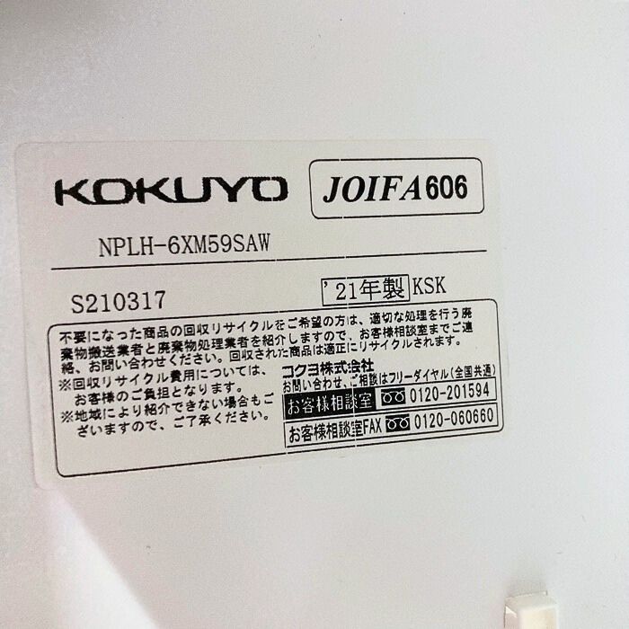 コクヨ イノンシリーズ 6人用パーソナルロッカー NPLH-6XM59SAW W900×D450×H1190 天板:ホワイトナチュラル/本体:ホワイト 2021年製 中古