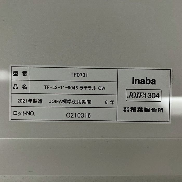 イナバ TFシリーズ 両開き書庫+ラテラルキャビネット W900×D450×H2150 オプティホワイト 2021年製 中古 ➉