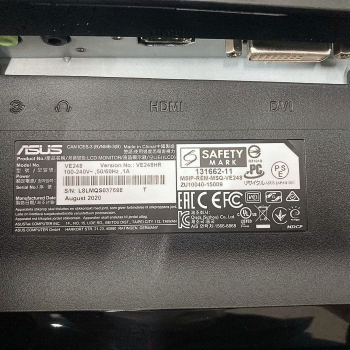 ASUS ゲーミングモニター24型 フルHDディスプレイ VE248HR ブラック 2020年製 中古 ※電源コード付き