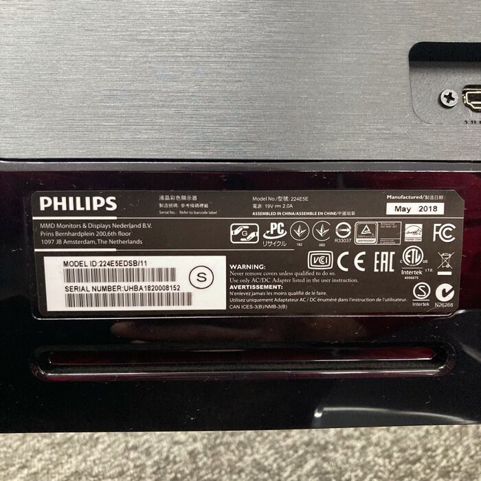 PHILIPS 21.5型AH-IPSパネル採用ワイド液晶ディスプレイ 2018年製 中古 ※電源コード付き