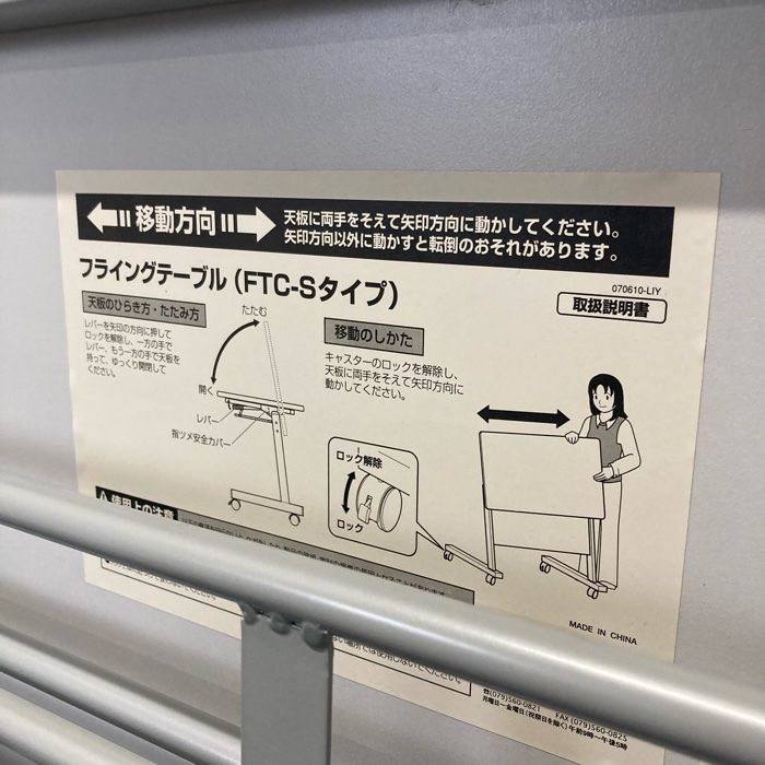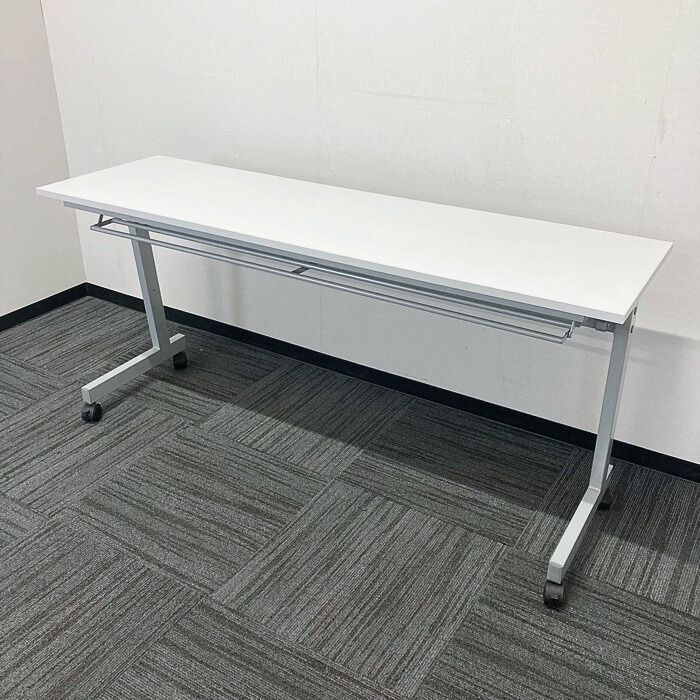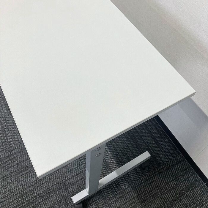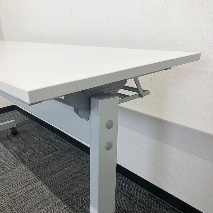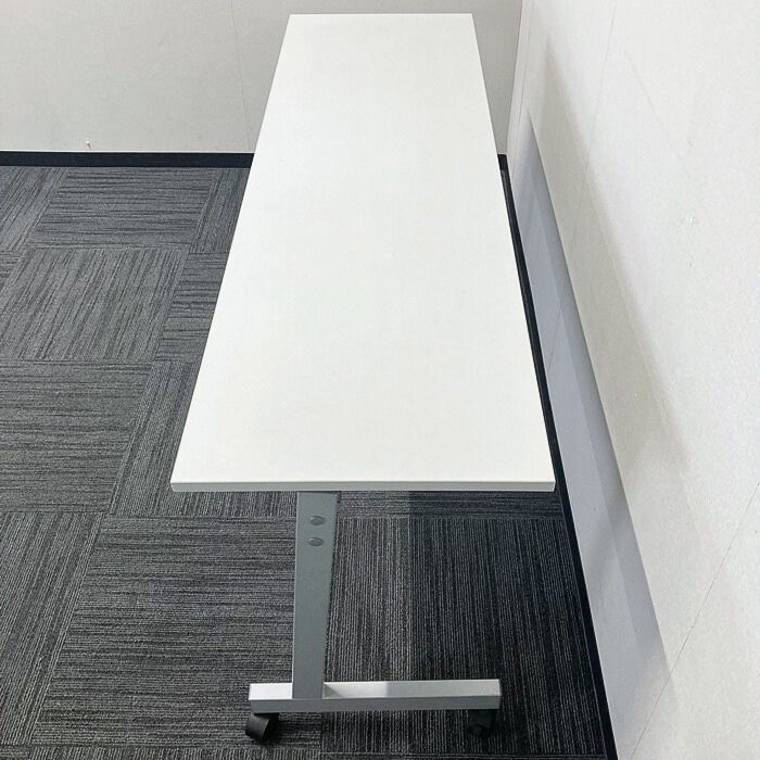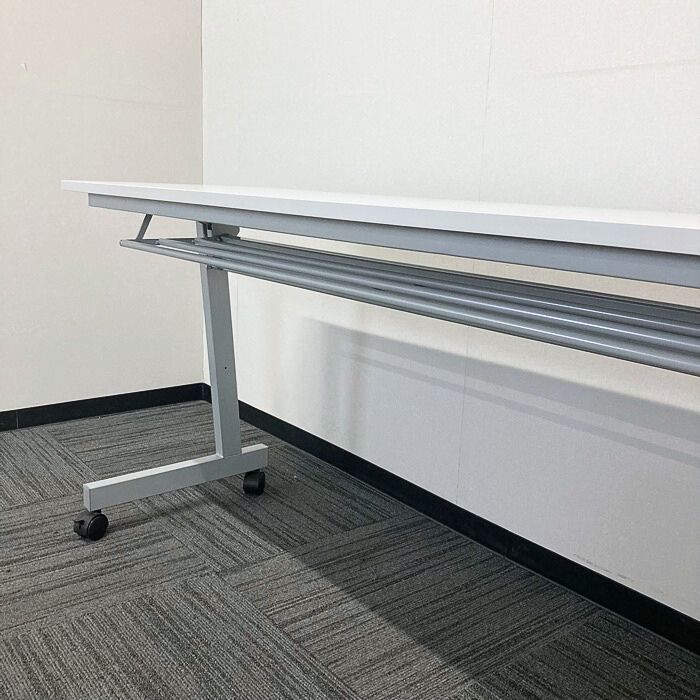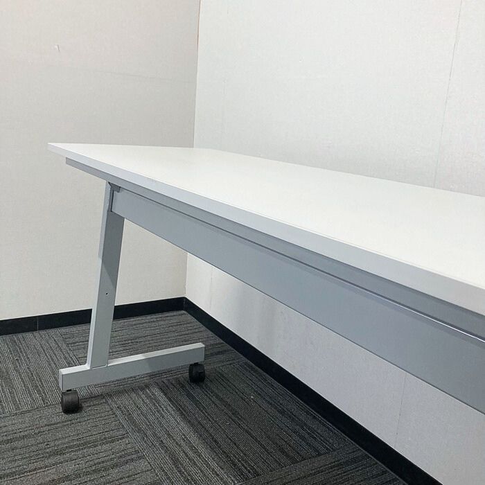 アイリスチトセ サイドスタックテーブル FC-S1545 W1500×D450×H700 天板:ライトグレー/脚:シルバー 中古 ➉ ※幕板なし
