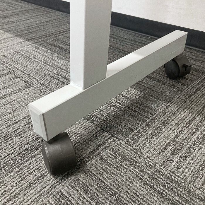 キャスター付きで手軽に移動でき、使用されない場合は天板を跳ね上げることで重ねて収納できます。