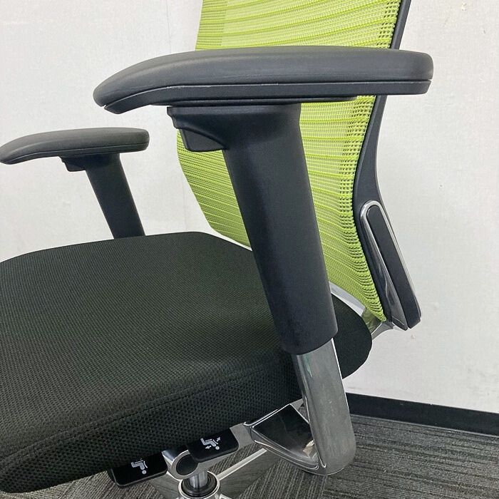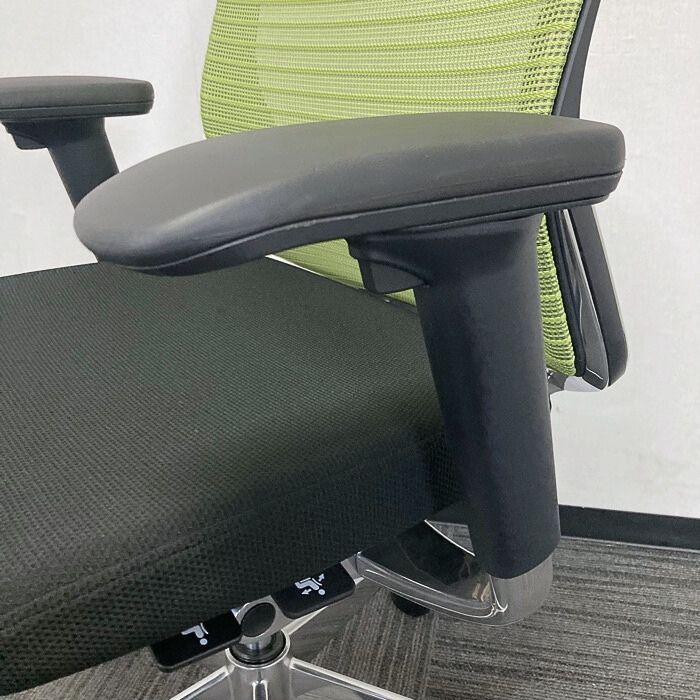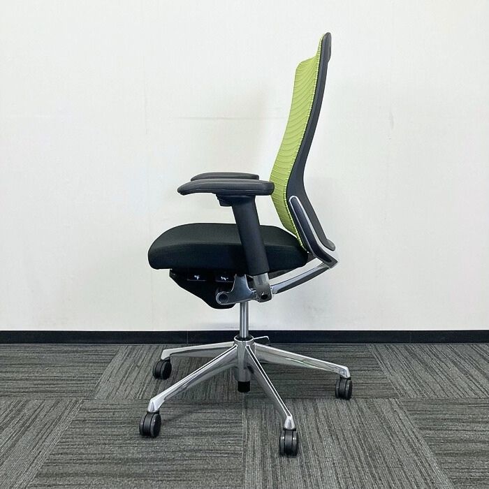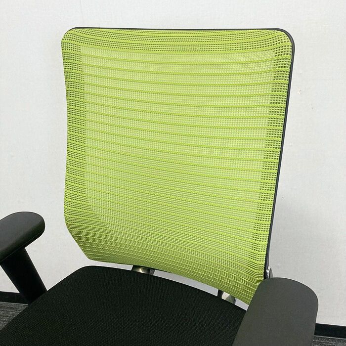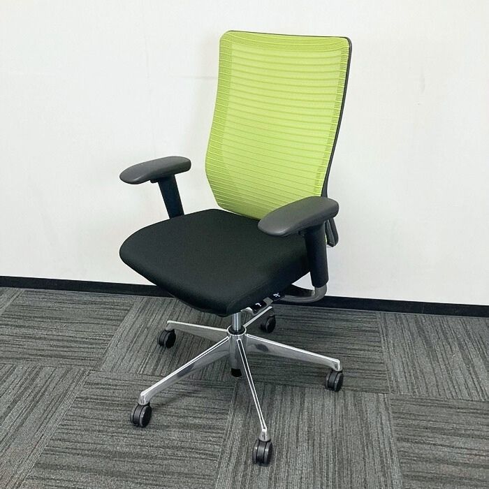オカムラ コーラルチェアシリーズ オフィスシーティング[アジャストアーム] CQ85KG ハイバック 背:ライムグリーン/座:ブラック 2024年製 中古