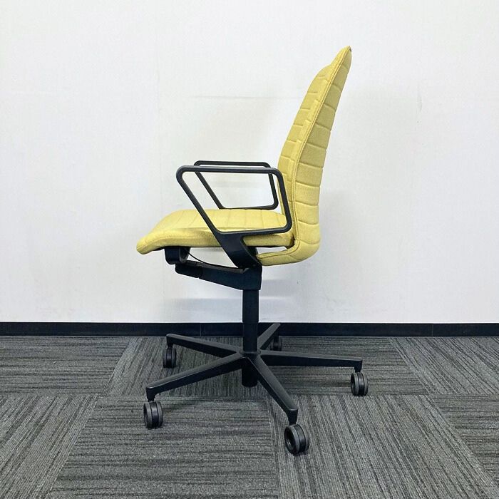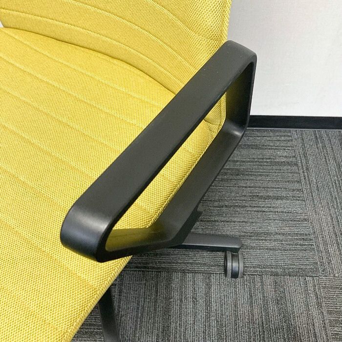 コクヨ ファブレシリーズ オフィスチェア[サークル肘] ストライプタイプ 背座:オリーブイエロー/フレーム:ブラック 2023年製 中古