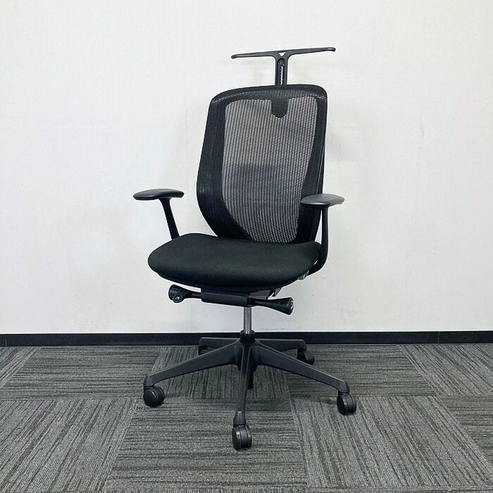 オカムラ シルフィーチェアシリーズ オフィスシーティング[デザインアーム] C645BXS FMP1 ブラックフレーム ハイバック ハンガー付き 背/座:ブラック 2016年製 中古
