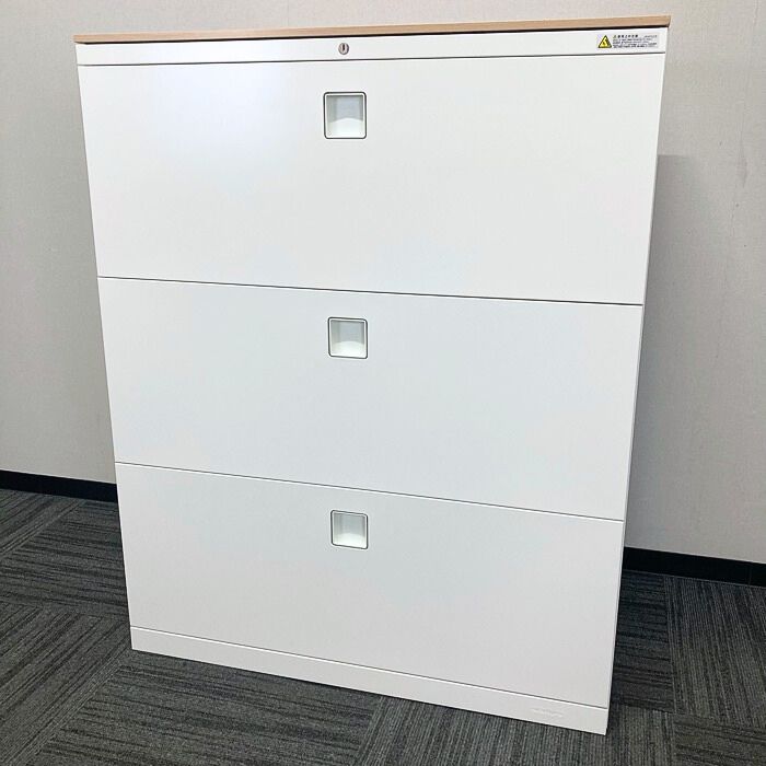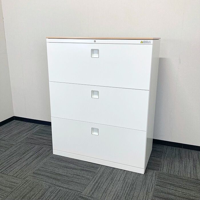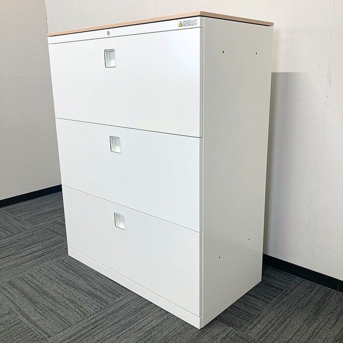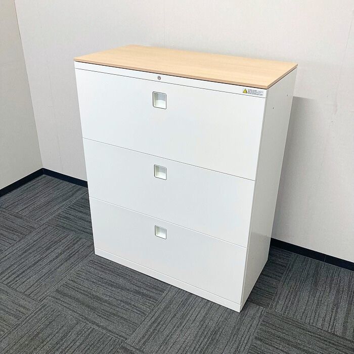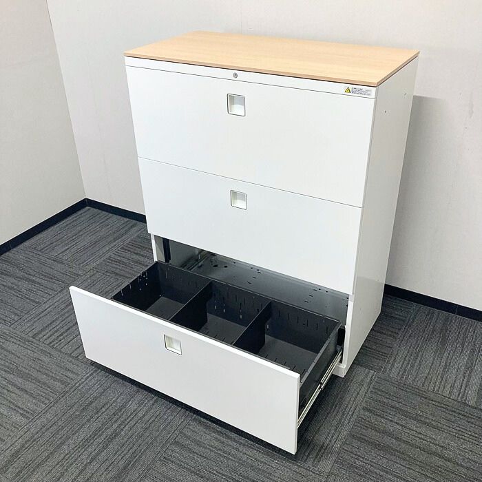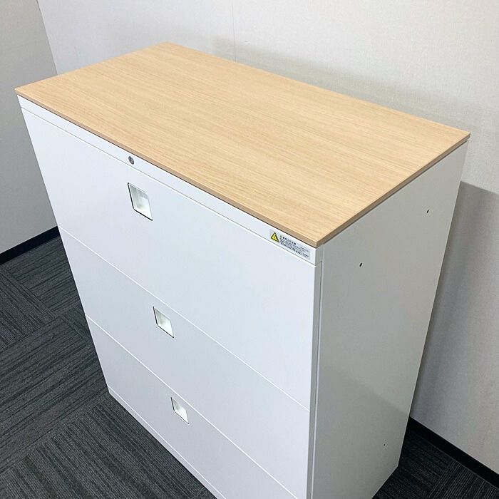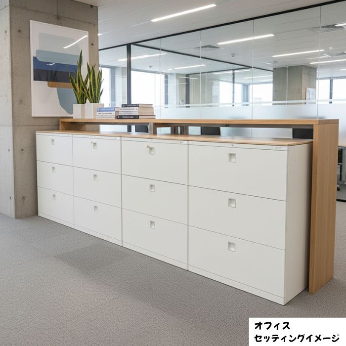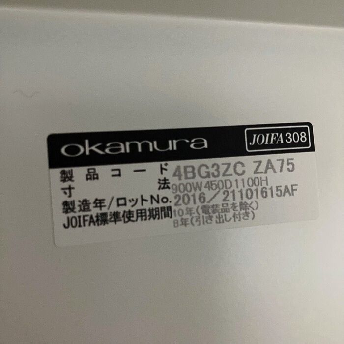 オカムラ レクトラインシリーズ ラテラルキャビネット 4BG3ZC ZA75 W900×D450×H1115 天板:ネオウッドライト/本体:ネオホワイト 2016年製 中古
