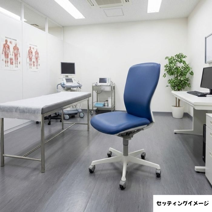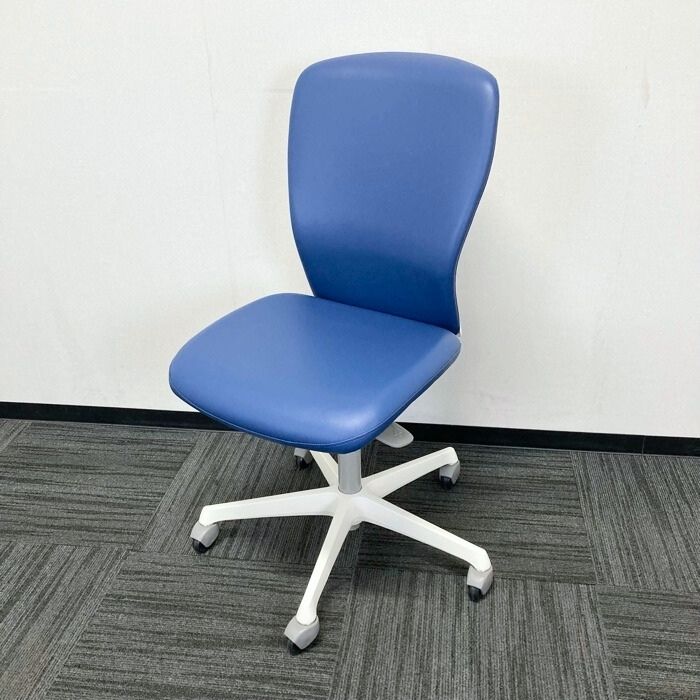 オカムラ スラートチェアシリーズ ドクター用チェア LT95XZ PB27 ビニール生地 ゴムキャスター 背座:インディゴブルー/シェル:ホワイト 2025年製 アウトレット品