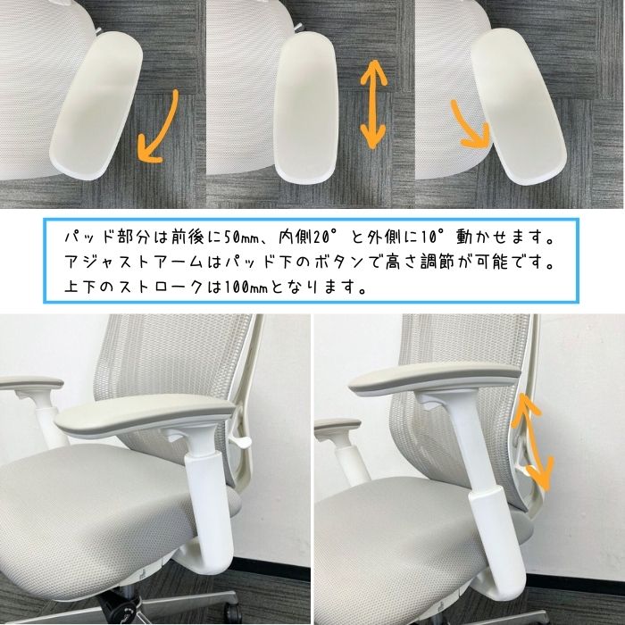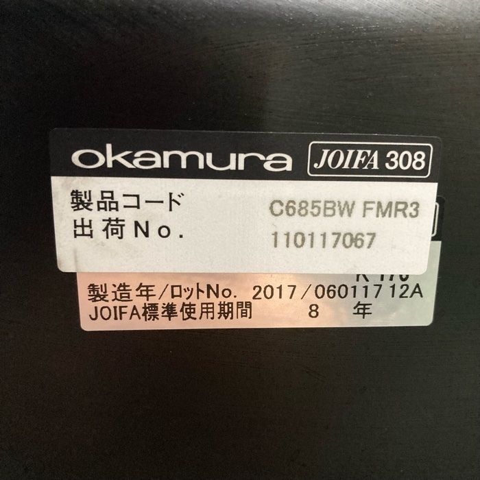 オカムラ シルフィーチェアシリーズ オフィスシーティング[アジャストアーム] CB685BW FMR3 ハイバック 背/座:ライトグレー/フレーム:ホワイト 2017年製 中古