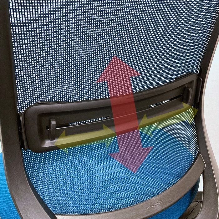 腰部を支えるランバーサポートは、パッドの上下・内外調節が可能であり、身体の曲線に沿わせた適度なカーブ形状が接触面積を広げ体圧を分散させます。